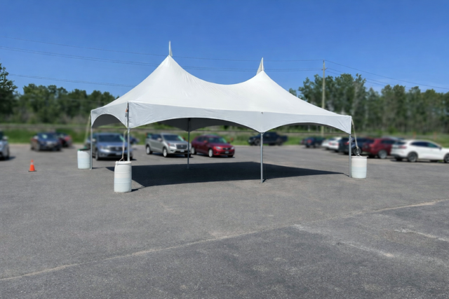 larger than the tent on all four sides. So, for example, a 40'x60' pole-tent requires a grass area that is 50'x70'. Normally, a frame-style tent requires only 2 extra feet of space on all four sides. So, for example, a 20'x40' frame tent can be set-up in an area that is 24'x44'. The pole-style tent requires an area that is all-grass, while the frame tent does not. In both cases, the area where the tent is to be installed cannot have obstructions on the ground or lack proper overhead clearance. Because it is important to ensure that a proposed site is suitable, we offer site inspections for customers who are not sure if they have enough room for a given tent size.
